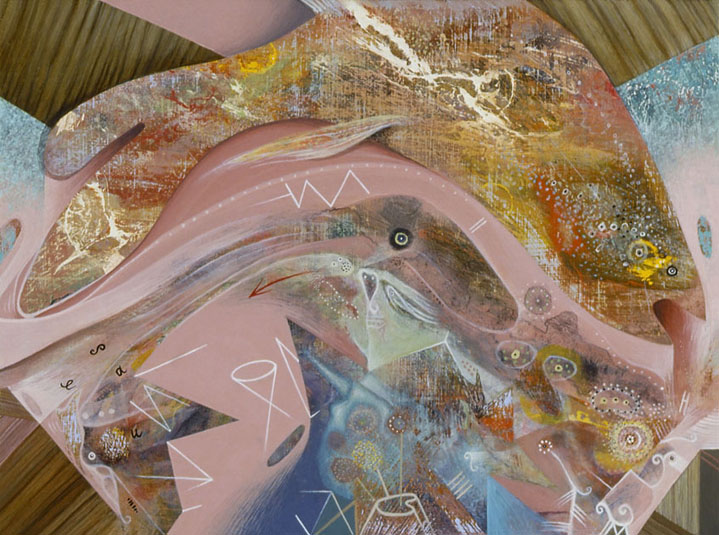 KURT SCHRANZER Table-Top with Catch 1992, acrylic on panel, 12.4 x 16.2 cm Signed and inscribed reverse with title, date, catalogue no. MLXXXXIX Provenance: Private Collection Exhibited: 1993 Shoot !, Gallery 483, Sydney. © Kurt Schranzer 2007